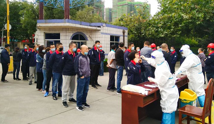受青島疫情影響,為防止疫情擴散傳播,2020年10月13日上午,宏泰接同和黨委通知,在公司臨時設立核酸檢測點,為員工進行核酸檢測。