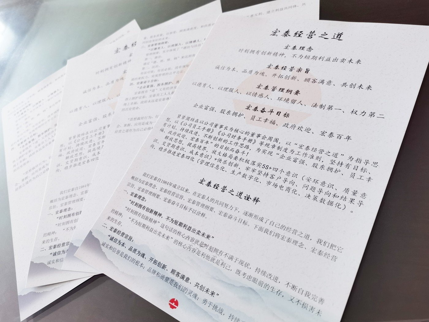 幾十年經營企業的不斷探索,與市場打交道的過程中,李保成先生提出了“企業富強、股東擁護、員工幸福、政府歡迎、宏泰百年”的奮斗目標與使命。